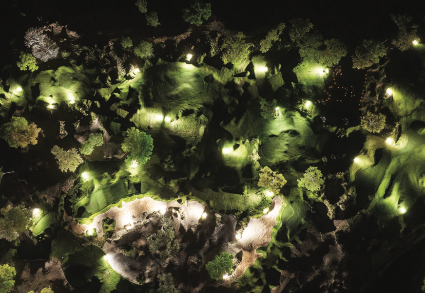 Adding to the allure, two distinctive shorter courses—The Squeeze and The Wedge—offer a refreshing twist. The Squeeze, a 9-hole course designed by Mike Nuzzo, ranges from 100 to 550 yards and provides a mix of fun and drama inspired by some of the world’s finest short par 4s. Meanwhile, The Wedge, an 11-hole par-3 course, features expansive waste areas and dramatically sloped greens, with holes ranging from 85 to 125 yards. Equipped with night lighting, it’s perfect for a quick, spirited round under the stars. These courses are perfect for quick rounds, making them ideal for both seasoned pros and novices looking for a fun, fast-paced experience.