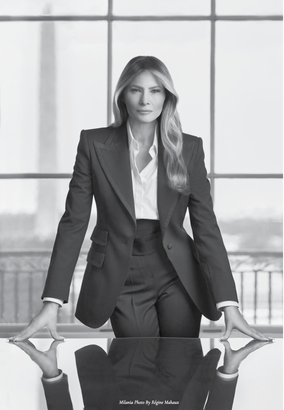 The look has become a symbol of feminine authority, worn by women across industries and generations to convey sophistication, rebellion, and poise. First Lady Melania Trump notably chose a tailored tuxedo by Dolce & Gabbana for her 2025 signature portrait. She paired it with a flowing white shirt and a satin Ralph Lauren cummerbund, standing confidently before the Washington Monument—projecting power and control through carefully chosen style.
